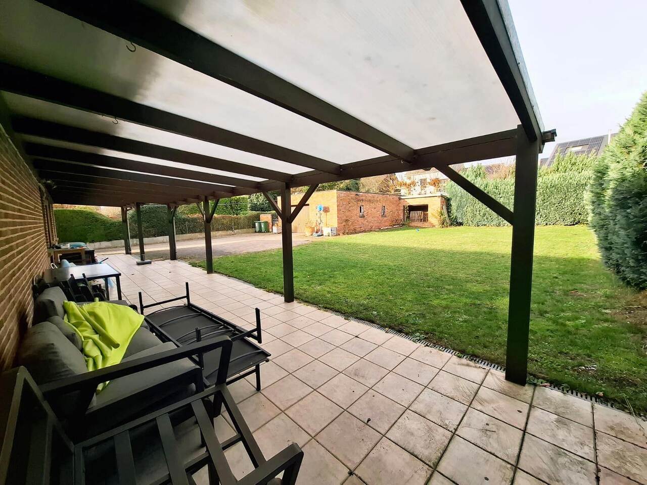 Het perceel van 866 m² biedt veel lichtinval en een tuin op het noordwesten, waardoor het terras vanaf 14u30 van de zon geniet. Voor snelle verwarming is er centrale verwarming op gas en voor extra sfeer een cassettehaard. Het dak werd volledig vernieuwd.